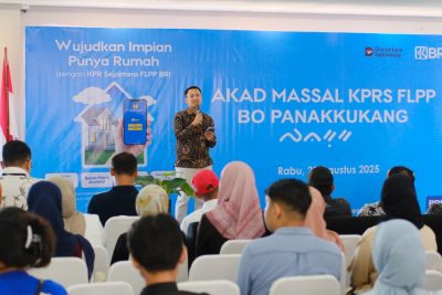 MAKASSAR, KORANMAKASSAR.COM — PT Bank Rakyat Indonesia (Persero) Tbk Branch Office (BO) Panakkukang dan Nasabah melakukan akad massal kredit Kepemilikan Rumah Sejahtera (KPRS) Fasilitas Likuiditas Pembiayaan Perumahan (FLPP), akad massal KPRS FLPP BRI yang di hadiri oleh Developer Perumahan dan Asosiasi Developer, H. Mahmud Lambang (Ketua DPD REI Sulsel), H. Burhanuddin SH (Ketua DPD Himperra Sulsel) dan Muhammad Basir (Perwakilan DPD Apersi Sulsel) tersebut berlangsung di Aula lantai 4 Kantor Cabang BRI Panakkukang, rabu (20/08/2025).