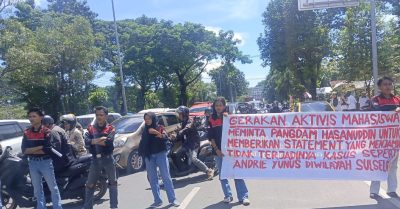Dalam aksi itu, massa secara bergantian menyampaikan orasi serta membentangkan spanduk yang mendesak Pangdam Hasanuddin memberikan jaminan agar kasus serupa tidak terjadi di wilayah Sulawesi Selatan, Sulawesi Barat, dan Sulawesi Tenggara (Sulselrabar).