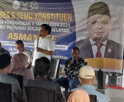 ENREKANG, KORANMAKASSAR.COM — Pada masa persidangan II tahun 2024-2025, Anggota DPRD Provinsi Sulawesi Selatan dari partai Nasdem, Asman, SE mengadakan acara reses di Kelurahan Juppandang pada hari Rabu, 26 Februari 2025.