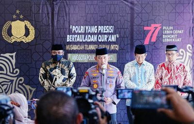JAKARTA, KORANMAKASSAR.COM — Kapolri Jenderal Listyo Sigit Prabowo menghadiri penganugerahan Musabaqah Tilawatil Qur’an (MTQ) anggota Polri di Auditorium STIK-PTIK, Kamis (18/82022). Kapolri menyebut sekitar 796 personel Polri dari 34 Polda mengikuti acara yang diselenggarakan dalam rangka HUT Kemerdekaan RI ke-77.