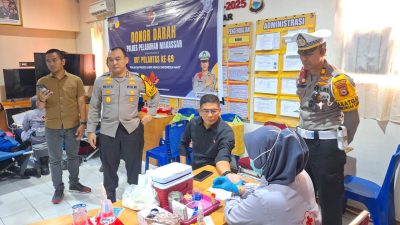 MAKASSAR, KORANMKASSAR.COM — Untuk membantu ketersediaan stok darah di Palang Merah Indonesia (PMI).Kapolres Pelabuhan Makassar AKBP Restu Wijayanto memimpin langsung kegiatan donor darah pejabat utama dan perwira serta bintara serta di jajarannya.
