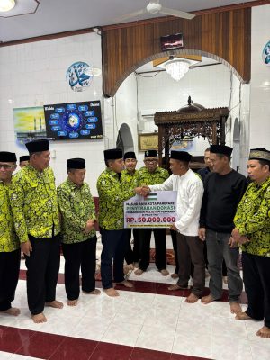 Di Sulsel, penyerahan donasi pembangunan masjid dilaksanakan di Masjid Raya Kota Parepare, Minggu 9 Februari 2025.