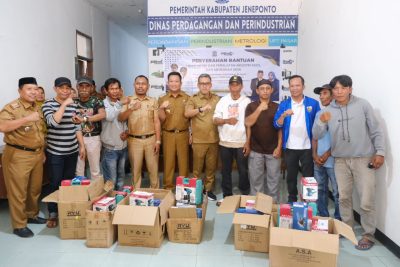 JENEPONTO, KORANMAKASSAR.COM — Bupati Jeneponto, H. Paris Yasir, didampingi oleh Kadis Disperdagin, H. Manrancai Sally, dan Kabid Industri, Amal Yahya, memberikan bantuan alat pertukangan kepada 7 orang penerima manfaat dari 4 kecamatan di Kabupaten Jeneponto, Senin (22/9/25).