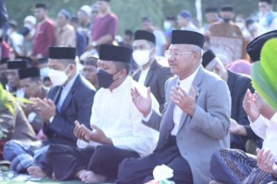 JENEPONTO, KORANMAKASSAR.COM — Bupati H. Ikksan Iskandar bersama Forkopimda dan Sekda melaksanakan Sholat Idul Fitri 1443 Hijriyah tahun 2022 Masehi di Stadion Mini Turatea Kelurahan Balang Toa, Kecamatan Binamu Kabupaten Jeneponto, Provinsi Sulawesi Selatan. Senin, 2 Mei 2022.