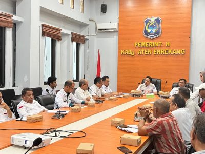 ENREKANG, KORANMAKASSAR.COM — Bupati Enrekang, H. Muh. Yusuf Ritangnga, dan Wakil Bupati Enrekang, Andi Tenri Liwang La Tinro, memaparkan capaian kerja 100 hari di Ruang Rapat Kantor Bupati Enrekang, Rabu (4/6/25).
