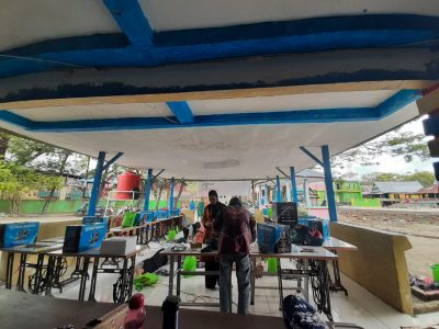 Sebanyak 14 mesin jahit, 2 alat obras dan beberapa alat lainnya didatangkan guna menunjang kegiatan pelatihan menjahit tersebut.