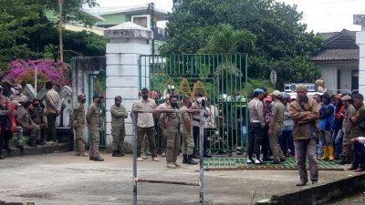 ENREKANG, KORANMAKASSAR.COM — Aksi Saling dorong terjadi antara pengunjuk rasa dan petugas keamanan saat para pendemo tak diberi ruang untuk bertemu Bupati Enrekang H Muslimin Bando. Unjuk rasa yang dilakukan Aliansi Masyarakat Massenrempulu (AMPU) didepan kantor Bupati Enrekang, Selasa (15/2/2022) berakhir ricuh karena masyarakat tak diizinkan masuk di kantor Bupati menemui orang nomor satu di Kabupaten Enrekang.