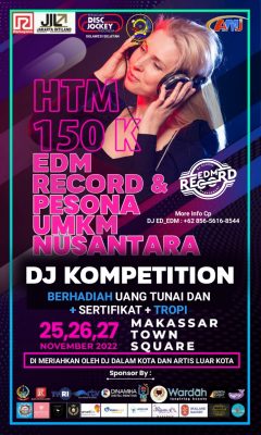 MAKASSAR, KORANMAKASSAR.COM — Di Mall Town Squere (M TOS), Kota Makasaar, Sulawesi Selatan bakal digelar pameran UMKM dan kompetisi Dics Jockey (DJ) yang akan berlangsung pada tanggal 25-27 November 2022 mendatang.