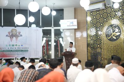 “Pada malam hari ini kita diberikan kesempatan berkumpul bersama di Masjid Amirul Mukminin ini dalam rangka melakukan doa dan Zikir untuk Nusantara Hari Santri tahun 2025,” ucapnya.