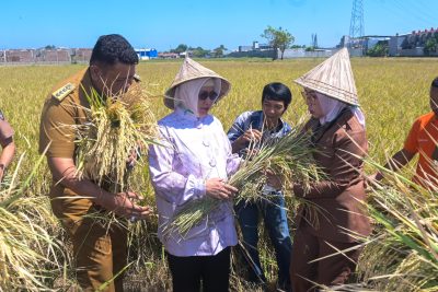 Selain memberikan motivasi kepada para petani, Indira juga melakukan peninjauan langsung ke sawah yang siap untuk dipanen.