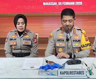 “Dari tiga pelaku, dua sudah lebih dahulu ditangkap. Satu pelaku terakhir, inisial RFV, berhasil diringkus di Timika setelah melarikan diri ke Papua,” ujar Arya saat konferensi pers di Mapolrestabes Makassar, Kamis (5/2/2026).