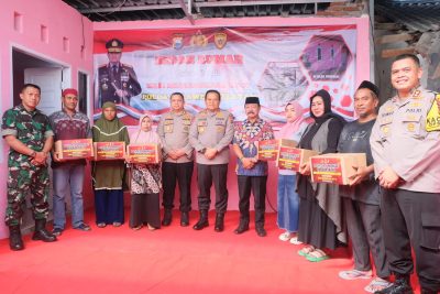 Usai menyerahkan bantuan bedah rumah melalui prosesi penyerahan kunci simbolis dan pengguntingan pita, Kapolda kemudian mengecek langsung kualitas dan estetika hunian.