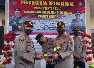 SIDRAP, KORANMAKASSAR.COM — Kapolres Sidrap AKBP Erwin Syah,S.I.K didampingi oleh Wakapolres Sidrap Kompol H. Muhtar,SE melakukan pengukuhan Polsubsektor Kulo, Watang Sidenreng dan Pitu Riawa Polres Sidrap. Jumat Pagi (29/07/2022).