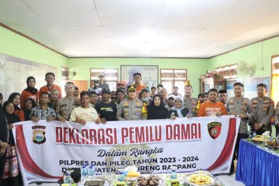 Dalam deklarasi Pemilu Damai, Kapolres Sidrap menyampaikan bahwa, kegiatan ini akan menjadi moment penting untuk memperkuat komitmen bersama warga masyarakat dalam menciptakan Pemilu yang aman dan damai.