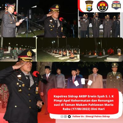Kapolres Sidrap AKBP Erwin Syah,SIK mengatakan bahwa, kegiatan apel kehormatan dan malam renungan suci sebagai wujud menghormati dan mengenang jasa para pahlawan yang gugur dalam memperjuangkan kemerdekaan republik Indonesia.