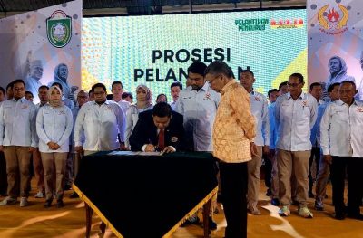 PAREAPRE, KORANMAKASSAR.COM — Ketua Umum Komite Olahraga Nasional Indonesia (KONI) Provinsi Sulawesi Selatan, Yasir Mahmud, SE., resmi melantik dan mengukuhkan pengurus KONI Kota Parepare Periode 2022 – 2026 dibawah kepemimpinan Zulham Arief, di Rumah Jabatan Walikota Parepare, Selasa (20/12/22).