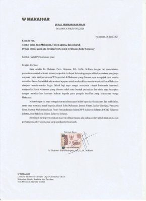 MAKASSAR, KORANMAKASSAR.COM — Pengacara kondang Hotman Paris Hutapea menulis surat terbuka sebagai permohonan maaf kepada warga Sulawesi Selatan, khususnya Makassar atas pernyataannya yang dianggap kontroversial saat meresmikan W Superclub di CPI pada 27 Mei lalu.