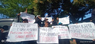 Ketua Forum Warga Bersatu, “Sadaruddin, menyatakan bahwa warga menolak putusan pengadilan tinggi yang memenangkan pihak penggugat intervensi, Mahdalena, yang mengklaim sebagai ahli waris atas lahan tersebut.