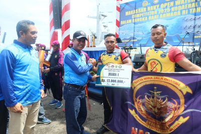 Para juara menerima medali, piala, uang pembinaan, dan piagam penghargaan, diserahkan langsung oleh pejabat Kodaeral VI dan perwakilan Forkopimda Sulsel di Panggung kehormatan bertempat di Dermaga Layang Kodaeral VI.