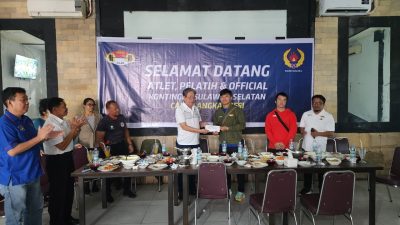 Jamuan makan siang dalam rangka penyambutan atlit, pelatih dan ofisial angkat besi kontingen sulsel dihadiri oleh pengurus provinsi dan pengurus kota antara lain Erwin Saputra dan Hendrik serta Fatahuddin yang juga sekretaris umum angkat besi Makassar. (*)