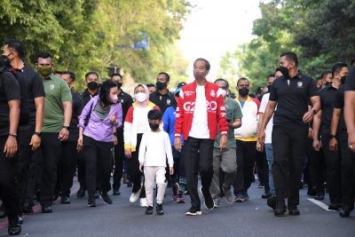 SURAKARTA, KORANMAKASSAR.COM — Presiden Joko Widodo dan Ibu Iriana Joko Widodo menghabiskan waktu bersama cucunya, Jan Ethes Srinarendra, dengan berjalan santai di sepanjang Jalan Slamet Riyadi, Kota Surakarta, Minggu, 7 Agustus 2022. Jalan tersebut diketahui merupakan lokasi hari bebas kendaraan bermotor atau car free day (CFD) di Kota Surakarta.