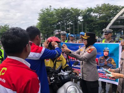 “Dalam rangka Operasi Keselamatan 2026, kami membagikan helm kepada pengendara roda dua. Jika helmnya sudah rusak atau tidak standar, kami berikan yang baru agar keselamatan saat berkendara tetap terjaga,” ujarnya.