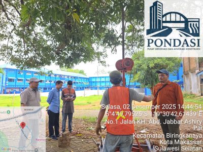 MAKASSAR, KORANMAKASSAR.COM — Lembaga Pusat Observasi dan Advokasi Konstruksi (PONDASI) kembali menjalankan program sosial berupa layanan sondir gratis bagi pondok pesantren. Kali ini, kegiatan dilaksanakan di Pondok Pesantren Darul Aman Gombara, Jalan KH. Abd. Jabbar Ashiry, Sudiang, Kota Makassar, pada Selasa (2/12/2025).
