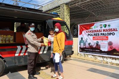 Kegiatan vaksinasi Polres Palopo tersebut menyediakan Souvenir berupa Minyak goring bagi warganya yang melaksanakan Vaksinasi pada saat itu juga. Sebanyak 140 masyarakat yang mengikuti vaksinasi Covid-19 di klinik bhayangkara Polres Palopo.