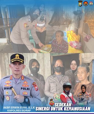 “Setiap hari jumat Polwan Polres Sidrap berbagi 100 nasi dos kepada warga prasejahtera di lokasi berbeda dengan harapan agar masyarakat prasejahtera di Kab. Sidrap dapat tersentuh secara menyeluruh dan merata”, ujar Kapolres Sidrap.