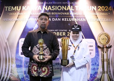 Penghargaan tersebut diserahkan langsung oleh Menteri Dalam Negeri Tito Karnavian bersama Direktur Jenderal Bina Pemerintahan Desa Kemendagri, La Ode Ahmad P. Bolombo, dalam acara Temu Karya dan Penghargaan Lomba Desa/Kelurahan Berprestasi yang berlangsung di Gedung Ksirarnawa, Denpasar, Bali, pada Selasa (8/10/2024).
