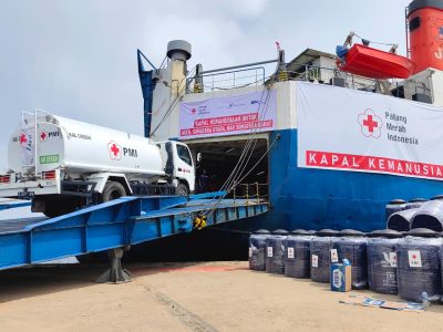 “Kapal ini membawa 31 tangki air bersih untuk melengkapi 29 tangki yang sudah lebih dulu berada di lokasi, sehingga totalnya 60 tangki,” ujarnya.