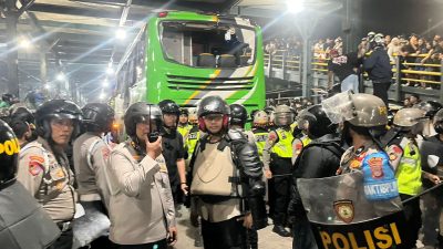 YOGYAKARTA, KORANMAKASSAR.COM — Polda Daerah Istimewa Yogyakarta atau DIY dan jajaran mengevakuasi suporter Persib Bandung yang menonton pertandingan sepakbola pertandingan sepakbola BRI Super League Musim 2025/2026 Putaran ke 1 antara PSIM Yogyakarta VS Persib Bandung di Stadion Sultan Agung, Minggu 24 Agustus.
