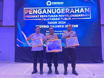 Penganugerahan yang melibatkan seluruh unit kerja lingkup Polda Sulsel dilaksanakan oleh lembaga Ombudsman Republik Indonesia (ORI).