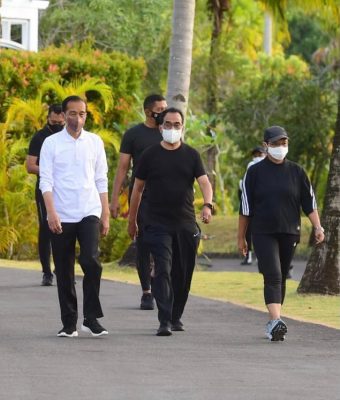 BINTAN, KORANMAKASSAR.COM — Mengawali kunjungan kerjanya di Provinsi Kepulauan Riau, Selasa, 25 Januari 2022, Presiden Joko Widodo berolahraga bersama sejumlah menteri. Sekitar pukul 06.40 WIB, Presiden mulai berjalan kaki mengelilingi area The Sanchaya Resort Bintan, Kabupaten Bintan.