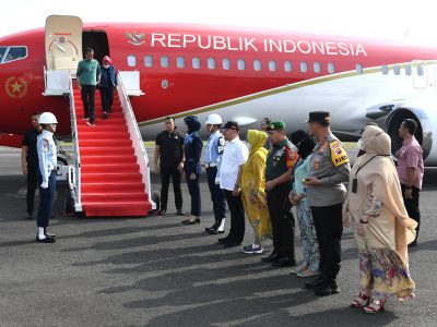 Setibanya di Bandar Udara Fatmawati Soekarno, Kota Bengkulu sekira pukul 15.15 WIB, Presiden Jokowi disambut oleh Gubernur Bengkulu Rohidin Mersyah beserta istri, Pangdam II/Sriwijaya Mayjen TNI Hilman Hadi beserta istri, dan Kapolda Bengkulu Irjen Pol. Armed Wijaya beserta istri.