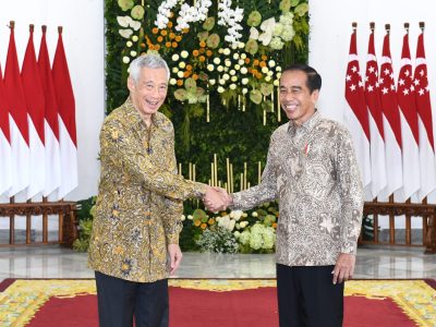 PM Lee bersama delegasi tiba di Istana Bogor sekitar pukul 10.00 WIB dan langsung disambut oleh Presiden Jokowi. Kedua pemimpin kemudian memperkenalkan delegasi dari masing-masing negara.