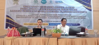 Workshop yang digelar oleh Pusat Penelitian dan Penerbitan (Puslitpen) Lembaga Penelitian dan Pengabdian kepada Masyarakat (LP2M) UIN Alauddin Makassar ini mengundang Prof. Ir Andi Dirpan, STP., M.Si, PhD, Sekertaris Publication Management Center (PMC) Universitas Hasanuddin, Selasa-Rabu (9-10 Juli 2024).