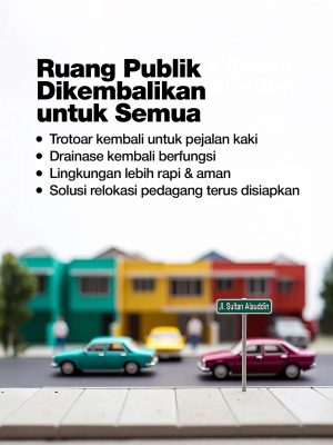 Melalui program ini, trotoar dikembalikan untuk pejalan kaki, saluran air dibersihkan, dan wajah kota ditata lebih rapi.