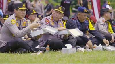 Dalam menggelar gladi bersih apel pasukan pengamanan KTT G20 Minggu, 6 November 2022 tersebut tampak Jenderal Sigit duduk lesehan bersama para anggota sembari menikmati hidangan nasi kotak.