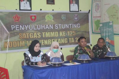 ENREKANG, KORANMAKASSAR.COM – Dalam rangka mendukung program pemerintah dalam penanggulangan stunting, Satgas TNI Manunggal Membangun Desa (TMMD) ke-125 Kodim 1419/Enrekang melaksanakan kegiatan penyuluhan tentang bahaya dan pencegahan stunting kepada masyarakat.