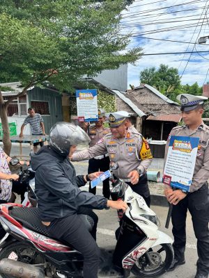 Untuk memperluas pemahaman masyarakat, petugas turut membagikan brosur berisi informasi prioritas pelanggaran pada Operasi Zebra Pallawa 2025 agar pesan keselamatan dapat mudah dipahami dan diingat oleh pengendara.