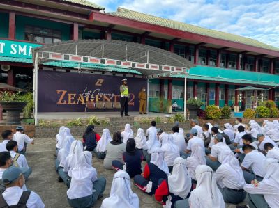 Didepan Ratusan Siswa Siswi SMA Negeri 1 Pinrang, Kanit Kamsel Aiptu Harmin Lakkase mengajak para remaja untuk bersama-sama menjaga situasi Keamanan, Keselamatan, Ketertiban dan Kelancaran lalu lintas di wilayah Kab. Pinrang