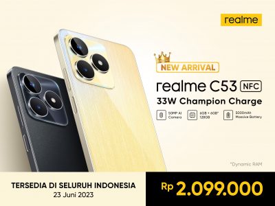 JAKARTA, KORANMAKASSAR.COM — 23 Juni 2023 – Setelah resmi dihadirkan secara online di Indonesia pada pekan lalu, realme tidak ingin menunggu lama untuk memberikan akses bagi anak muda Indonesia untuk dapat memiliki realme C53 NFC, smartphone terbaik di harga Rp2 juta. realme C53 NFC (6GB+6GB*/128GB) kini telah tersedia di kanal online dan toko offline di seluruh Indonesia dengan harga Rp2.099.000.