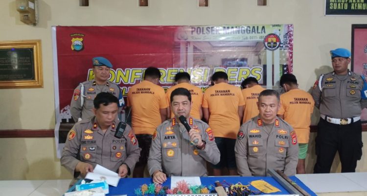 MAKASSAR, KORANMAKASSAR.COM — Unit Resmob Polsek Manggala meringkus lima orang kawanan geng