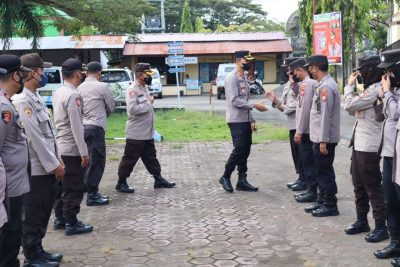 Usai melaksanakan apel, Kapolres beserta personel melaksankan kegitan halal bihalal dengan saling bersalam salaman. (**/Wis)