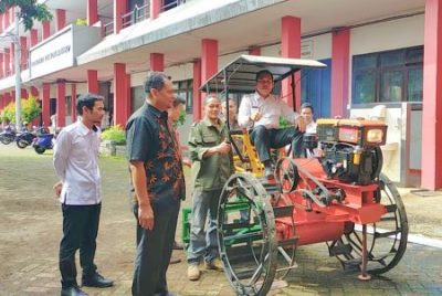 Mahmud dalam kesempatan tersebut melihat berbagai teknologi yang dibuat ATIM sekaligus juga mengujicoba traktor buatan ATIM.