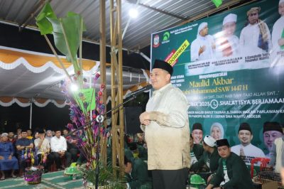 MAKASSAR, KORANMAKASSAR.COM — Wali Kota Makassar, Munafri Arifuddin, menghadiri Maulid Akbar Nabi Besar Muhammad SAW 1447 H yang digelar oleh Majelis Zikir dan Muhasabah Darut Taubah di pelataran Masjid Darut Taubah, Jalan Taman Makam Pahlawan, Kecamatan Panakkukang, Minggu malam (26/10/2025).