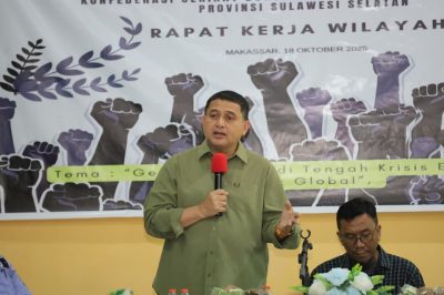Hal tersebut disampaikan saat memberikan sambutan pada Rapat Kerja Wilayah (Rakerwil) Konfederasi Serikat Buruh Sejahtera Indonesia (KSBSI) Provinsi Sulawesi Selatan Tahun 2025 yang digelar di Gedung PGIW, Jalan Abdurrahman Basalamah, Makassar, Sabtu (18/10/2025).