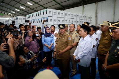 MAKASSAR, KORANMAKASSAR.COM — Wali Kota Makassar Moh Ramdhan Pomanto bersama Pj Gubernur Sulsel Bahtiar Baharuddin, KPU Sulsel juga Bawaslu Sulsel dan Forkopimda terkait ikut meninjau lokasi Gudang Logistik Pemilu Kota Makassar di Jl Ir Sutami, Senin, (8/01/2023).