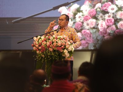 MAKASSAR, KORANMAKASSAR.COM — Wali Kota Makassar Moh Ramdhan Pomanto bersama Pj Gubernur Sulsel dan ribuan umat Kristiani menyerukan Pemilu damai pada acara Perayaan Natal Oikumene Masyarakat, Pemerintah, TNI-Polri Pemprov Sulsel di Hotel Myko, Rabu, (31/01/2024).